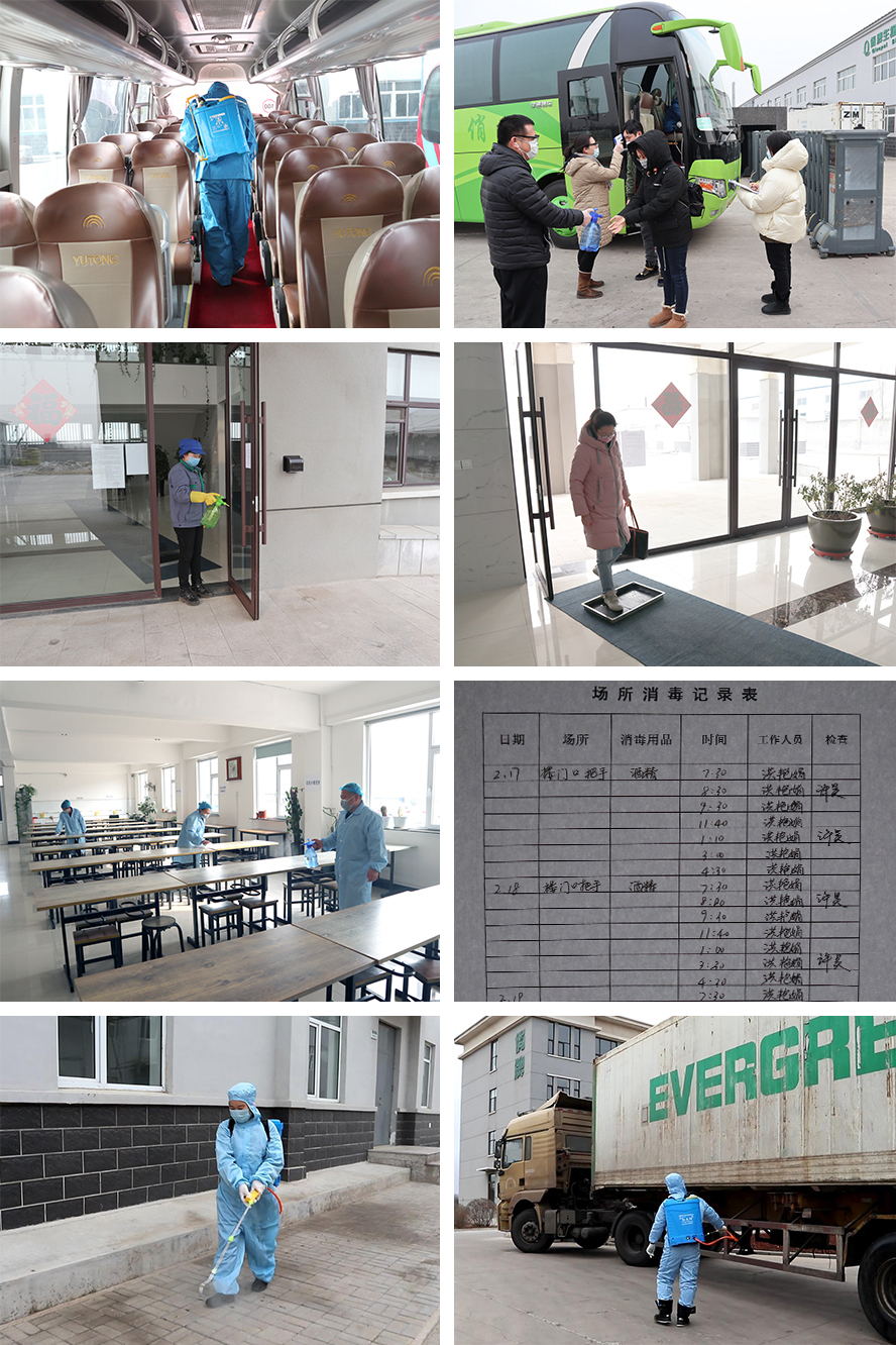 1月25日(正月初一)俏牌緊急成立疫情防控工作領(lǐng)導(dǎo)小組,公司董事長(zhǎng)任組長(zhǎng)。1月26日(正月初二)俏牌疫情防控工作小組向全體俏牌員工發(fā)出緊急通告。☆呼吁全體員工盡量減少出門,更不要探親訪友聚餐聚會(huì);☆所有員工每天在微信群上報(bào)位置及身體情況。2月9日 《遼寧俏牌公司日常防御工作細(xì)則》出臺(tái)。◇公司辦公樓、生產(chǎn)車間、食堂、通勤車全面徹底消毒。◇公司日常防護(hù)用口罩、額溫槍、酒精、次氯酸鈉消毒液庫(kù)存充足。